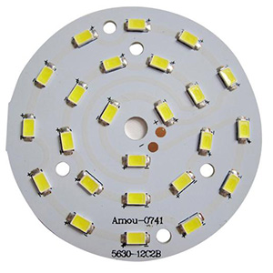 Aliuminio PCB yra metalo pagrindo variu dengtas laminatas, turintis gerą šilumos išsklaidymo funkciją. Paprastai vieną skydą sudaro trijų sluoksnių struktūra, kurią sudaro grandinės sluoksnis (vario folija), izoliacinis sluoksnis ir metalinis pagrindo sluoksnis. Dažniausiai randama LED apšvietimo gaminiuose. Yra dvi pusės, balta pusė skirta LED kaiščiams lituoti, o kita pusė yra natūralios aliuminio spalvos. Paprastai šilumai laidžioji pasta bus naudojama norint susisiekti su šiluma laidžia dalimi.